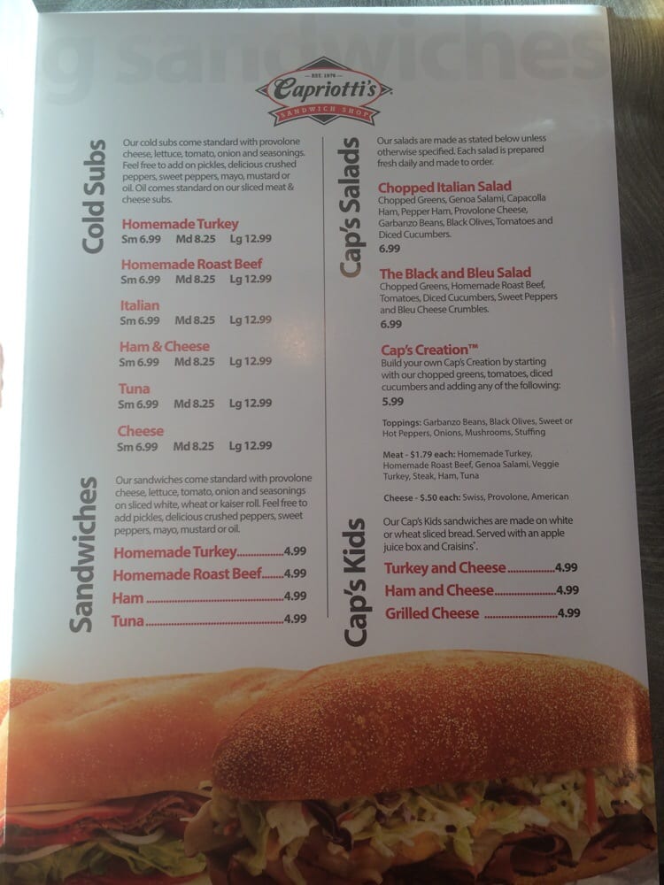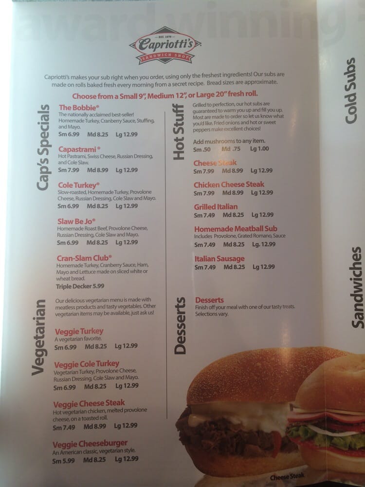 Capriotti's Sandwich Shop North Las Vegas Menu (Update 2025)